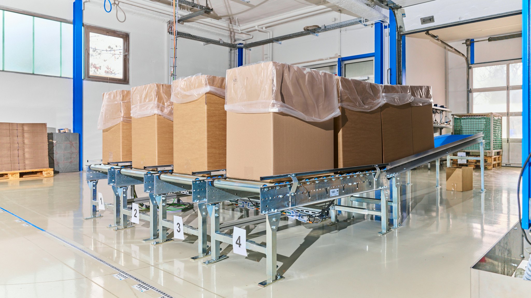 » TAF Industriesysteme liefert moderne Fördertechnik für eine durchgängige, automatisierte Intralogistik. Zum Einsatz kommen Lösungen für den Leerkartonpuffer, die Anbindung der Maschinen an LEO sowie die Verbindung mit Kartonrüttler, Kartonverschließer und Palettierroboter.