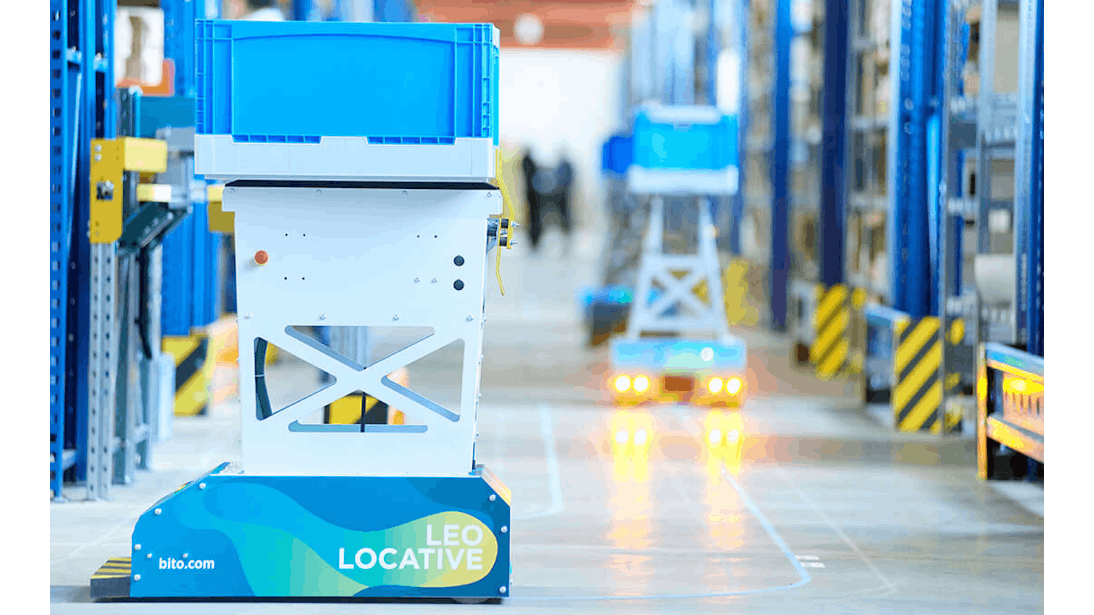 - The five LEO locative transporters take on the long journeys to pick up the goods at the six LEO stations in front of the shelves and transport them to the assembly and dispatch stations.