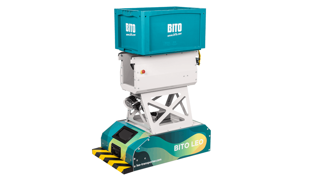 LEO locative automates the transport of containers, cardboard boxes and trays. The system does not require an IT connection and can be implemented and expanded by customers themselves. One of the special features of the system is the load pick-up of the transporter and the associated transfer stations. Containers can be dropped off and picked up without any loss of time as they pass through the stations.